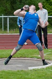 Eine Augenweide war dagegen der Wettkampf in der U18, wo die beiden Neubrandenburger Patrick Müller und Henning Prüfer ihre Klasse eindrucksvoll demonstrierten. Müller verbesserte die deutsche Jahresbestleistung von Simon Bayer (LAV Tübingen), der am 1. Mai 18,11 Meter gestoßen hatte, auf 18,34 Meter und hatte weitere 18m-Stöße in seiner Serie. Auch Henning Prüfer blieb mit 18,16 Meter über der alten DLV-Jahresbestleistung. Da hatte Trainer Thorsten Schmidt allen Grund zum Strahlen, denn beim anschließenden Pokalstoßen kamen beide fast an die 19 Meter-Marke heran. Das lässt für die Zukunft hoffen. Hier reifen nicht nur zwei Talente heran, die im nächsten Jahr die 20 Meter-Marke übertreffen werden, sondern wer deutscher U-18-Meister werden will, der wird es nicht leicht haben: er muss erst Patrick Müller und Henning Prüfer, die auch im Diskuswerfen zur absoluten DLV-Spitze gehören, bezwingen. Den dritten Rang sicherte sich Marc Krause aus Niederrodenbach mit 15,48 Meter. Platz vier ging an Karl Westphal (VfL Wanfried), der gelegentlich nach Melsungen kommt, um mit den gleichaltrigen MT-Athleten zutrainieren. Freuen durften sich auch Henri Alter (12,18 Meter) und Jan Ullrich (12,09 Meter), denn beide übertrafen zum ersten Mal die anvisierte 12Meter-Marke.