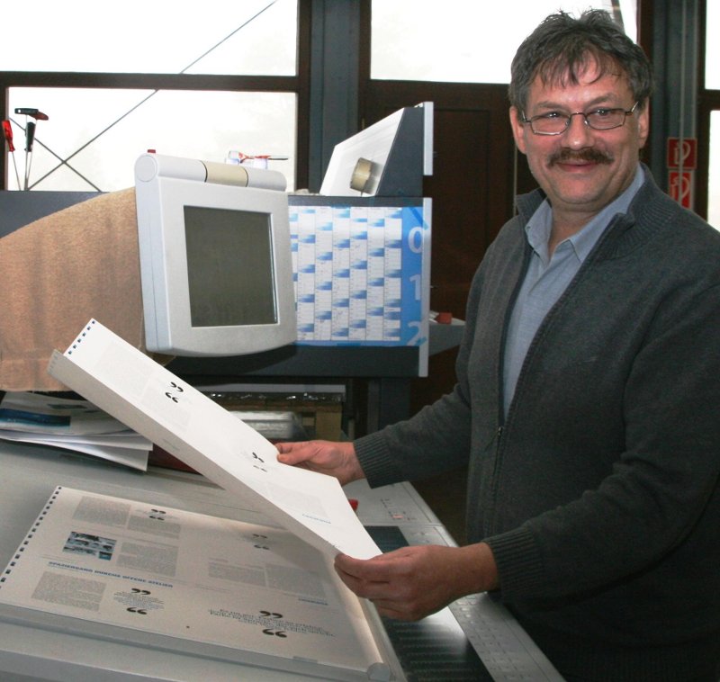 Nach Schule und Lehre arbeitete Plag in Werbestudios in Stuttgart und Frankfurt, danach in Druckereien in Marburg und Kassel. 1974 machte er sich mit der Druckerei Plag selbstständig, auch hier arbeiteten Hilfskräfte, die in Wohngruppen Hephatas lebten. 1994 wurde die Druckerei Teil der Gena, einer gemeinnützigen Gesellschaft zur Entwicklung neuer Arbeitsplätze, die von Kreis, Stadt und Hephata getragen wurde. Plag wurde Geschäftsführer, aus den ehemals 16 wurden 32 Mitarbeitende, 25 davon waren Menschen mit Behinderungen. „Aber: Alles hat seine Zeit. Das galt auch hier. Irgendwann habe ich gemerkt, dass es aus gesundheitlichen Gründen nicht mehr so weiter geht“, erinnert sich der 62-Jährige. Er musste kürzer treten, 2008 stieg Hephata in die Geschäftsführung ein, Wolfgang Plag wurde Betriebsleiter. „Das war eine große Entlastung, weil ich mich nicht mehr um den administrativen Teil kümmern musste.“ Genug zu tun gab es trotzdem. „Die Technik hat sich ständig verändert, vom Buchdruck meiner Zeit zum Offsetdruck, vom Bleisatz zum Fotosatz bis hin zum Digitaldruck.“ Und dann kam das Internet, über das man „hau ruck auch Druckprodukte bestellen konnte“. Angesichts dessen sei der persönliche Kontakt zu seinen Kunden, der Service, immer wichtiger geworden. „Ich habe nicht nur Aufträge erfüllt, sondern auch Vorschläge gemacht, Rückmeldungen gegeben, Konzepte entwickelt. Ich habe hinter allen Drucksachen gestanden.“