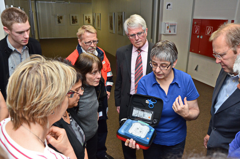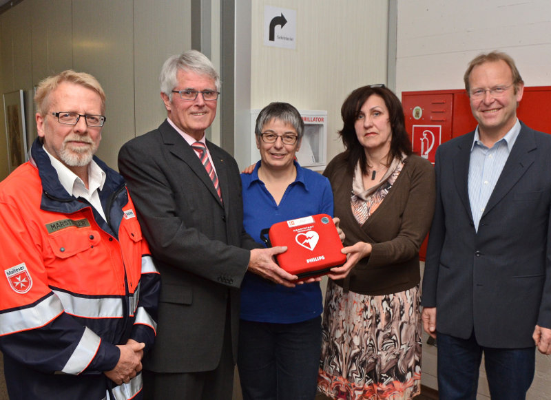 Der Defi gehört in der aus Sicht von Wilfried Marställer vom Malteser Schulsanitätsdienst zur Ausstattung des im Aufbau befindlichen schulinternen Sanitätsdienstes. Schließlich sollen schon Schüler mit lebensrettenden Hilfsmitteln vertraut sein.