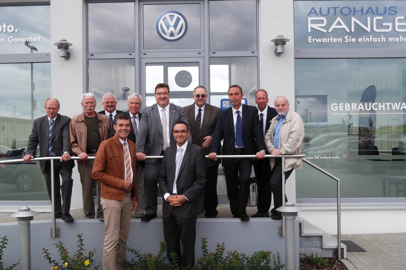 Zweiter Programmpunkt war der Handelsplatz „Das WeltAuto“ der Firma Autohaus Range. Die Idee zum Neubau entstand vor gut einem Jahr aufgrund von akutem Parkplatzmangel rund um das Autohaus in der Wolfhager Straße. Dirk Braun, Friedrich Keller und Michael Machulik, die drei Gesellschafter des Autohauses Range, setzten sich zusammen und suchten nach einem Ausweg, welchen sie in der Fläche des Gewerbegebiets Brautäcker fanden. Entstanden ist eine 6.000 Quadratmeter große Fläche für zertifizierte Gebrauchtfahrzeuge mit dem Qualitätslabel „Das WeltAuto“ sowie ein Bürogebäude inklusive Annahmebühne und Fahrzeugübergabefläche. Permanent werden hier 120 Fahrzeuge angeboten. Aus Sicht des Abgeordneten ist dieser Platz ein weiterer wichtiger Schritt im Zusammenhang mit dem wirtschaftlichen Erfolg dieses Autohauses. Nachdem die drei Neugesellschafter das Unternehmen im Jahr 2010 mit 29 Mitarbeitern übernommen hatten ist die Zahl nunmehr auf 67 gestiegen.
