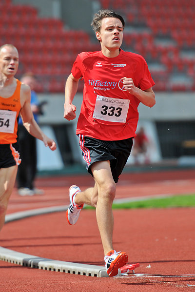 Im 5000m-Lauf lieferte er im letzten Rennen dieser Veranstaltungsreihe eine taktische Meisterleistung ab. Es war bekannt, dass der Göttinger Nicolas Nikuradse die zwölfeinhalb Runden unter 17:20 Minuten laufen konnte. Lorenz Funck, der bis dahin die Gesamtwertung der U18 anführte, durfte nicht mehr als fünf Sekunden auf den Göttinger verlieren. Eigentlich ein Ding der Unmöglichkeit, weil seine Bestzeit aus dem Vorjahr noch bei 17:56 Minuten stand. Aber nach seinen Trainingseindrücken war der Jugendliche aus Obermelsungen in der Lage, alle fünf 1000m-Abschnitte um 3:30 Minuten zu laufen, so dass er auf eine Endzeit unter 17:30 Minuten kommen sollte. Als er die Ziellinie nur zwei Sekunden hinter Nico Nikuradse nach 17.21,94 Minuten passiert hatte, huschte ein leises Siegerlächeln durch sein Gesicht, denn er wußte in diesem Augenblick, er hatte die 29. Auflage dieser Laufserie in der U18 für sich entschieden. „Beim letzten Lauf hatte ich nur einen Gedanken im Kopf gehabt: Ich wollte die 5000 Meter unter 17:30 Minuten laufen. Nachdem ich die 4000 Meter genau in 14 Minuten passiert hatte, mobilisierte ich auf den letzten zweieinhalb Runden alle Kräfte und ließ mich nicht mehr abschütteln. 35 Sekunden schneller als im Vorjahr war der verdiente Lohn“, strahlte der 17-Jährige, der drei Tage vorher bei den hessischen Straßenlaufmeisterschaften über 10 Kilometer seine Bestzeit um fast drei Minuten auf 37:00 Minuten drücken konnte.