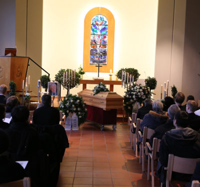 Auch Lutz Richter ging zum Ende seiner Predigt auf das verbindende Wirken Biskamps in Diakonie und Kirche ein: Karl Biskamp hinterlasse ein „sehr lebendiges diakonisches Leitbild, gewissermaßen als Vermächtnis. Eher still und unaufdringlich, aber überzeugend und herausfordernd hat er uns, die wir ins Diakonie, Kirche und Gesellschaft tätig sind, beispielhaft gezeigt, welche Gestaltungspotenziale unser Glauben – eben das in Christus sein, bietet“. Biskamp habe für Werte wie die Liebe zu Gott und den Menschen, Friedensliebe und Toleranz gestanden. Dafür habe er sich unter anderem nach seiner Pensionierung beim Arbeitskreis Toleranz und Menschenwürde in Schwalmstadt eingesetzt. In den letzten zehn Jahren hätten ihm jedoch ernsthafte Erkrankungen immer mehr zu schaffen gemacht. Der runde Geburtstag seiner Ehefrau Erika, mit der Karl Biskamp 58 Jahre verheiratet gewesen ist, und das Weihnachtsfest waren die letzten Feierlichkeiten, die Biskamp im Kreise seiner Familie, zu der acht Kinder und 21 Enkelkinder gehören, erlebte. Für sie und alle anderen Trauergäste leitete Richter aus den Paulus-Worten den Trost ab: „Mit dem Tod ist nicht alles aus. Der Verstorbene bleibt in Christus; wir dürfen ihn bei Gotte geborgen wissen.“ (me)
