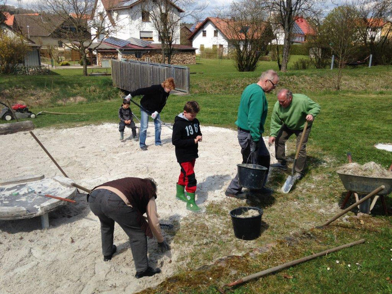 Unterstützt von ein paar freiwilligen Helfern aus dem Dorf konnte man an einem Samstag viel erreichen. Insbesondere auf dem Spielplatz und dem Festplatz gab es jede Menge zu tun. Unkraut wurde gejätet und Hundekot entfernt. Große Mengen von Dreck, Erde Unkraut und Moos, welche sich an den Festplatzrändern angesammelt hatten, wurden in unzähligen Schubkarren abgefahren. Rund um die Sammelbehälter für Altglas wurde ebenso gereinigt, wie der Bereich um die Bushaltestelle am Dorfteich. Auch die Bekanntmachungskästen erstrahlen nun wieder in neuem Glanz.