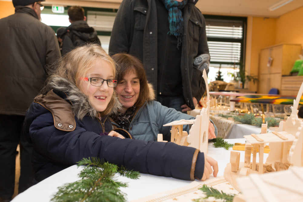 Elisa und Mutter Sonja Vesper (von links) an den Marktständen. Foto: Hephata