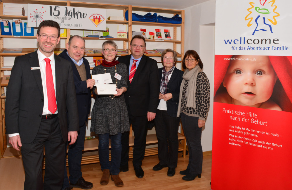 Schwalm-Eder. Kreistagsvorsitzender Michael Kreutzmann und Landrat Winfried Becker übergaben gemeinsam mit dem stellvertretenden Vorstandsvorsitzenden der Kreissparkasse, Thomas Gille, eine Spende in Höhe von 1.000 Euro an den Trägerverein von Familienzentrum und Elternschule Schwalm-Eder e.V.