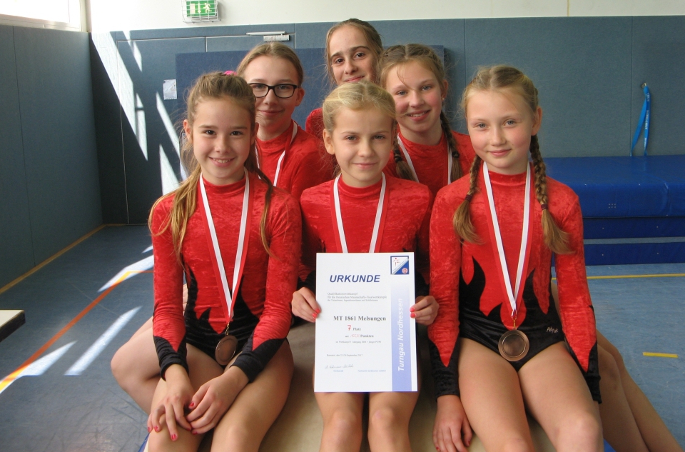Im jahrgangsoffenen Wettkampf P 6/P 9 war ebenfalls nur eine Mannschaft aus Melsungen am Start. Das Quintett hatte relativ kurzfristig noch neue Übungen ins Programm genommen. Die Übungen am Boden und Sprung saßen bereits gut. Wie schon die beiden jüngeren Mannschaften erreichten sie Rang 7 mit 167,85 P. Beste Einzelturnerin war Nele Schmoll (58,25 P). (Christian Kihn)