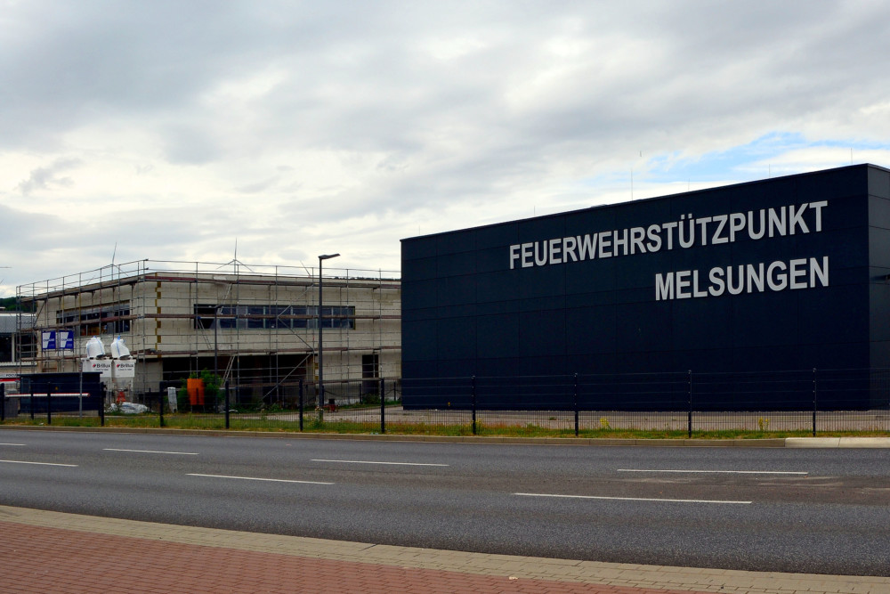 Der Melsunger Feuerwehrstützpunkt und links daneben der Rohbau der neuen Polizeistation. Foto: seknews.de