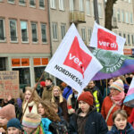 Kassel. An diesem Freitag streikte FridaysForFuture bundesweit gemeinsam mit Beschäftigten des Nahverkehrs. Unter dem Motto: #wirfahrenzusammen gab es in 120 Städten Kundgebungen, in Kassel waren 1.300 Menschen dabei. Nach der Auftaktkundgebung auf dem Hauptbahnhof, traf der Demozug am Platz der Deutschen Einheit auf die Streikenden der KVG.